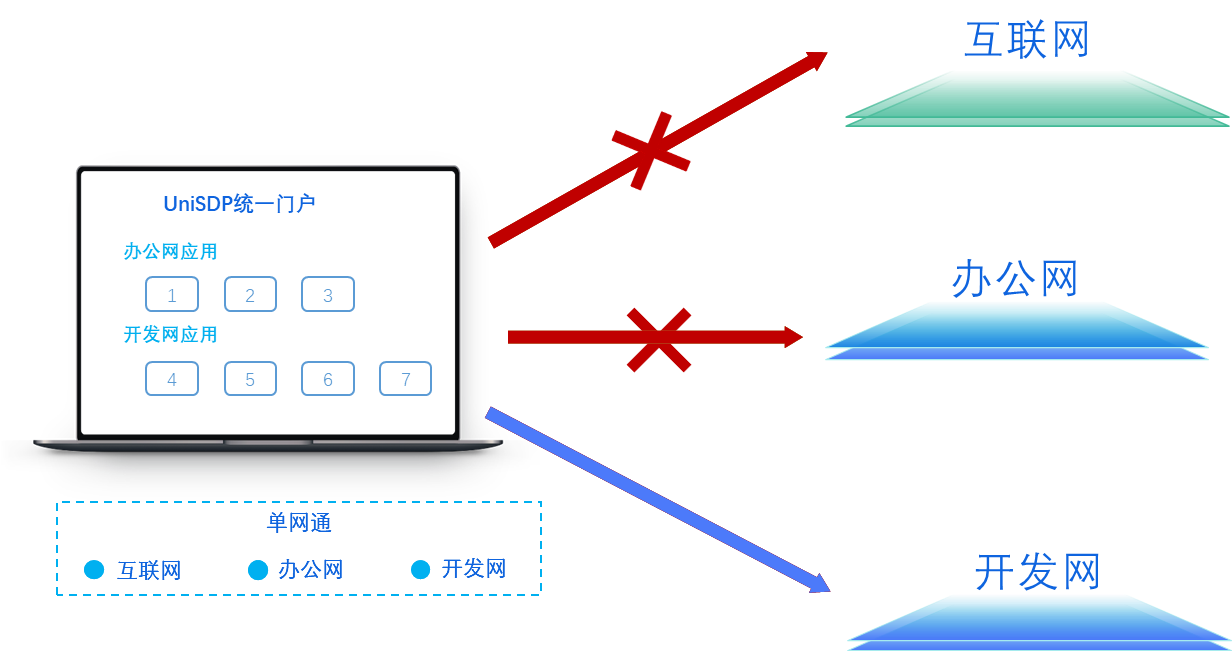 业务需求:国家电子政务外网管理中心要求政务外网与互联网安全隔离,但原有通过多台终端分别访问不同网络的方式使用体验较差且成本较高;